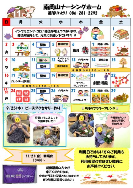 11月の行事表をUPしました🍂