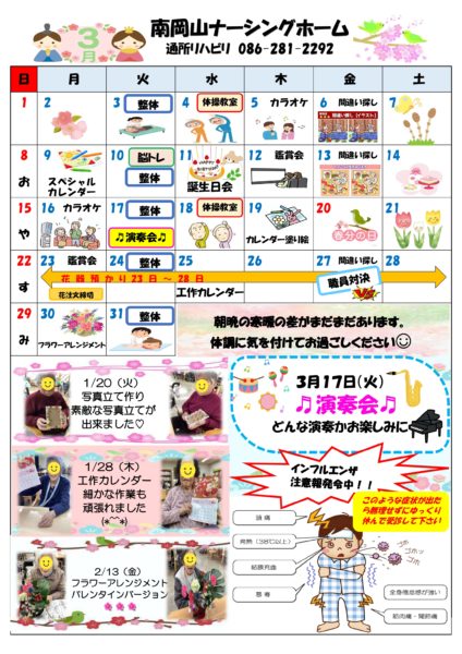 【事業所案内】南岡山ナーシングホーム通所リハビリテーション 行事表(3月度)更新しました