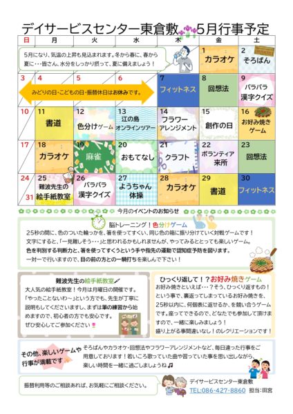 【事業所案内】デイサービスセンター東倉敷 行事表(5月度)更新しました