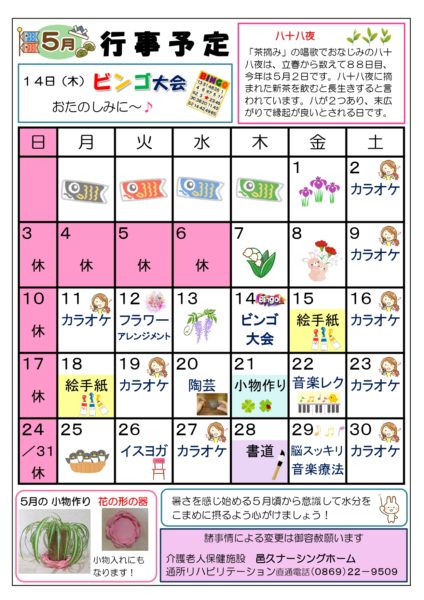 【事業所案内】邑久ナーシングホーム通所リハビリテーション 行事表(5月度)更新しました